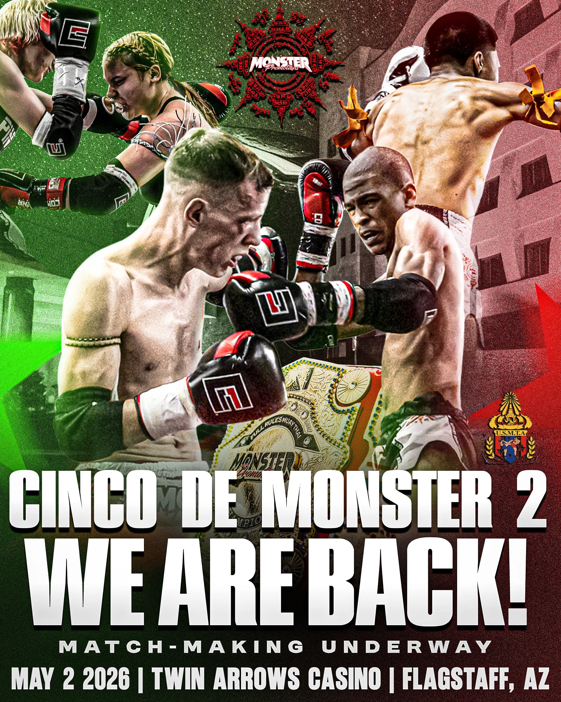 Monster Promotions is leveling up! Join us May 2nd for our first-ever event at Twin Arrows Casino — Cinco de Monster. This action-packed night will feature the best amateur Muay Thai talent in the Southwest, bringing heart, grit, and unforgettable matchups to a brand-new stage.