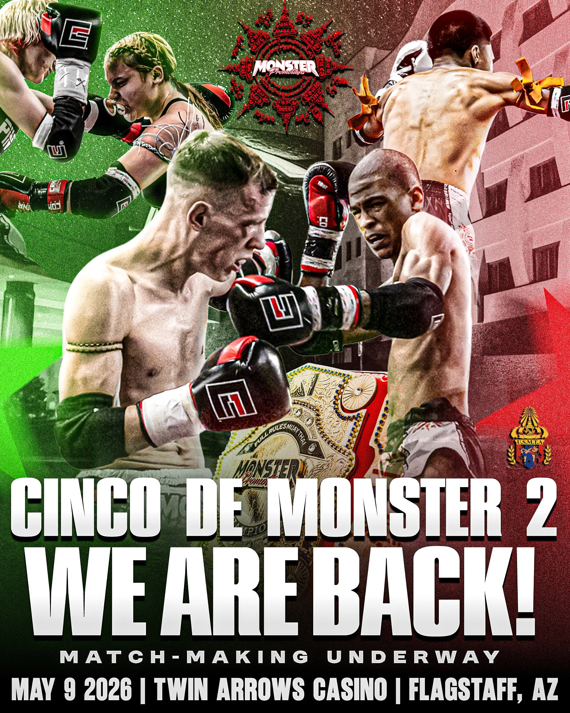 Monster Promotions is leveling up! Join us May 9th for our first-ever event at Twin Arrows Casino — Cinco de Monster. This action-packed night will feature the best amateur Muay Thai talent in the Southwest, bringing heart, grit, and unforgettable matchups to a brand-new stage.